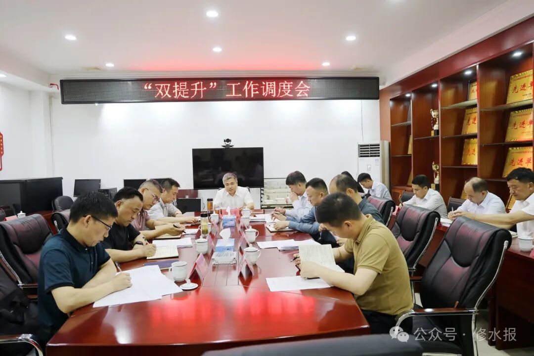 4月29日下午,县委书记郑庆华主持召开“双提升”工作调度会,县委常委、政法委书记冷芬华,县领导龚浙江出席,县公安局、县法院、县检察院、县司法局、县交管大队、县公安局森林分局、政府各部门主要负责人,县委政法委班子成员等参加会议。