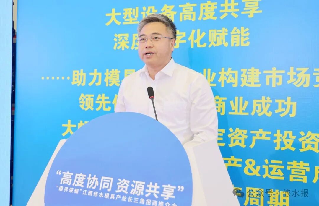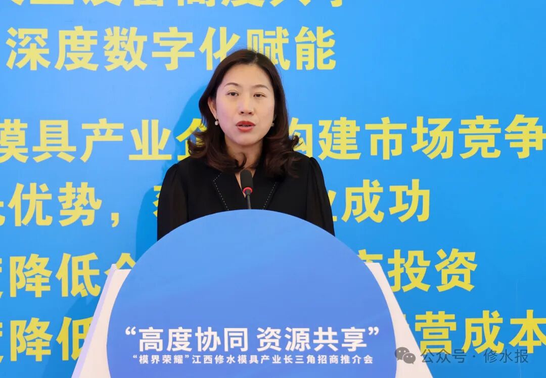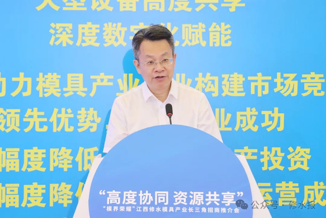 陈水连向江西修水模具产业长三角招商推介会的举办表示诚挚的祝贺。他说,近年来,九江将产业发展作为第一要务,聚焦“提升传统、倍增新兴、布局未来”三条路径,大力实施“9610”工程,全力打造制造业区域中心,修水县正抢抓机遇,高质量打造模具产业集群,省委、省政府和市委、市政府对修水的工业发展十分关心,省委书记尹弘专门听取修水县模具产业发展情况汇报,省委副书记、省长叶建春多次对修水县高质量发展工作作出批示。省商务厅、省工信厅、省国控集团等拿出了实实在在的支持举措,九江市从基金投入、政策协同等多维度支持修水打造百亿级模具产业。修水县是九江工业发展的重要支撑力量,主动落实全市制造业“9610”工程,聚焦打造中部地区新兴模具智能制造基地目标,立足修水,辐射全国,服务全球,引进落户了百亿模具数字产业园、江西豪斯特、江西耐斯机械、江西哲盛机械、江西发创机械等一批模具及配套企业,以补强产业链条、促进产业集聚集群发展为主攻方向,着力打造中部地区模具产业基地。我们绝不错失任何一个机遇、绝不耽误任何一个项目、绝不辜负任何一家企业,以最大的诚意、最优的环境、最高的礼遇,欢迎各位企业家前来投资创业。