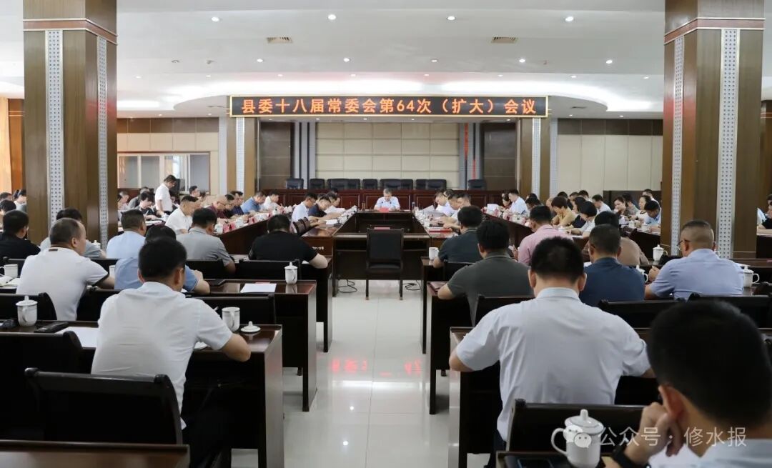 7月5日下午,县委书记郑庆华主持召开县委十八届常委会第64次会议,传达学习习近平总书记近期系列重要讲话精神;传达学习市委书记刘文华来修考察调研指示精神,并研究贯彻落实意见。县委副书记刘婕、马文卿、辛建波,县委常委冷芬华、刘伟、卢海明、董国祥、查明杨、周群峰、阮国明、廖冰出席。县人大常委会主任袁观云、县政协主席王位华列席。