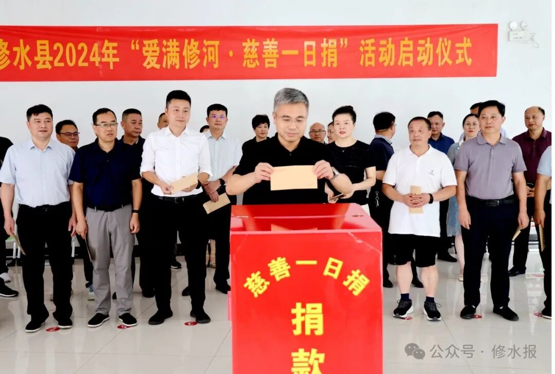 今年9月5日是我国第九个“中华慈善日”。当天下午,县委书记郑庆华,县委副书记、县长刘婕,县委副书记马文卿、县人大常委会主任袁观云,县政协主席王位华,以及朱秋生、冷芬华、刘伟、董国祥、周群峰等县四套班子在家领导集中参加“修水县2024年‘爱满修河 慈善一日捐’活动”,示范带动全县上下践行慈善行动、汇聚爱心力量,共同推动慈善事业健康繁荣发展。