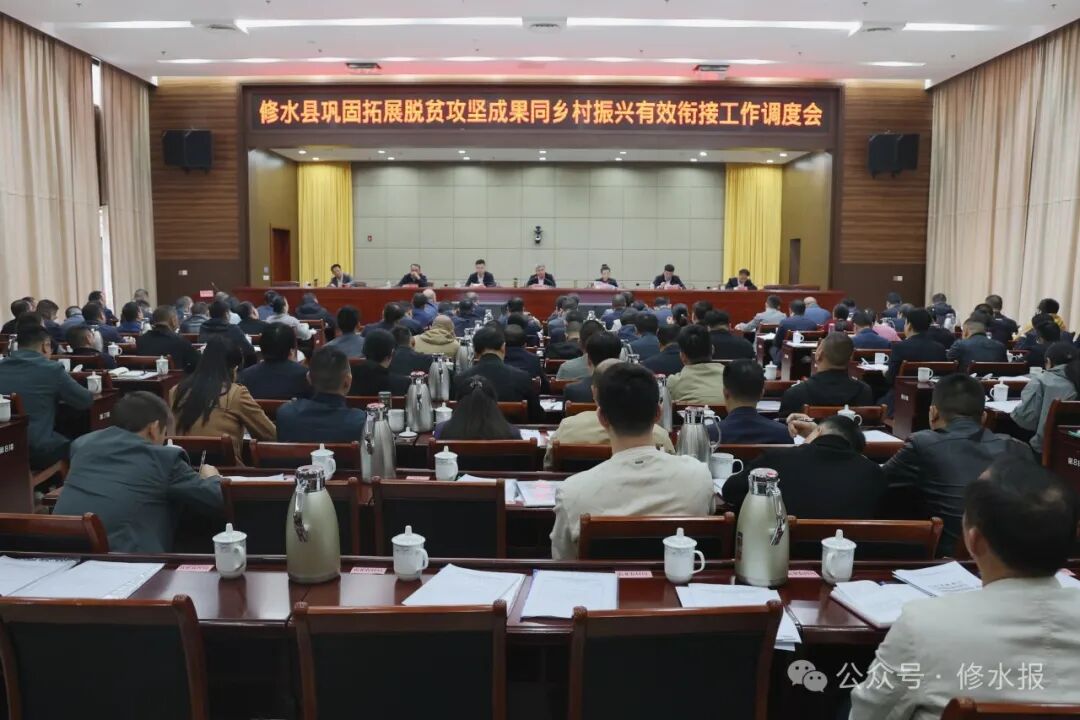 11月1日上午,全县巩固拓展脱贫攻坚成果同乡村振兴有效衔接调度会召开,进一步深入学习贯彻习近平总书记关于“三农”工作的重要论述,动员全县上下进一步提振精神,狠抓落实,打一场巩固拓展脱贫攻坚成果同乡村振兴有效衔接工作攻坚战,确保各项目标任务圆满完成。县委书记郑庆华出席并讲话,县委副书记、县长刘婕主持,县委副书记马文卿,县领导梁慧斌、张屹东、饶健东,县委各工作机关、县政府各工作部门及县直各单位主要负责人、各乡镇党委书记在县市民服务中心西附楼主会场出席。各乡镇班子成员,乡村振兴工作站全体人员;各村(居)党组织书记、驻村第一书记在各分会场参加。