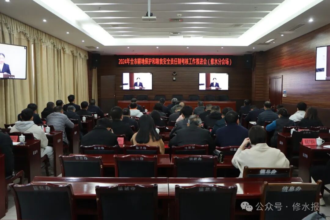 12月2日上午,全市耕地保护和粮食安全责任制考核工作推进会召开。市委副书记、市长蒋文定出席会议并讲话。市政府副市长容长贵出席,市政府副市长熊晋喜主持,市政府秘书长欧阳新华参加。会议以视频形式开到各县(市、区)。县委书记郑庆华,县政府副县长饶健东在修水分会场收听收看。