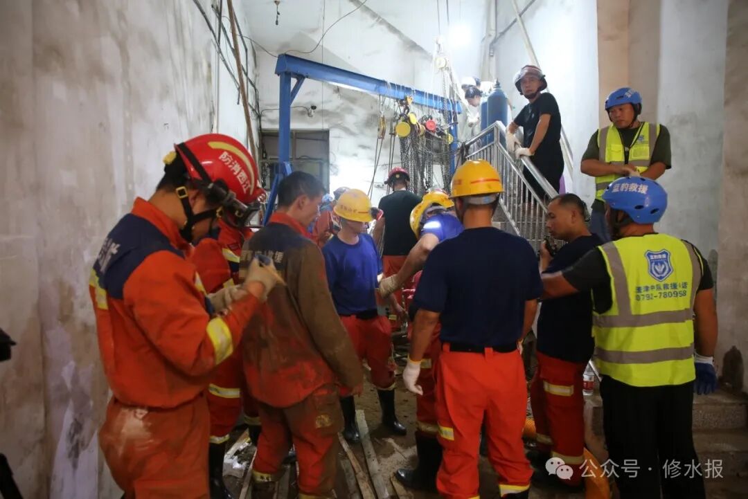 国家矿山应急救援乐平队新余大队大队长张学剑说:“救援井底泥沙较多,每次仅容一人作业,带来一定的难度,我们将救援井与被困井之间水泥圈切割贯通后,首先将被困人员上半身移到救援井,再将下半身被埋的部位周边泥沙再次清理,最终达到安全出井的目的。”