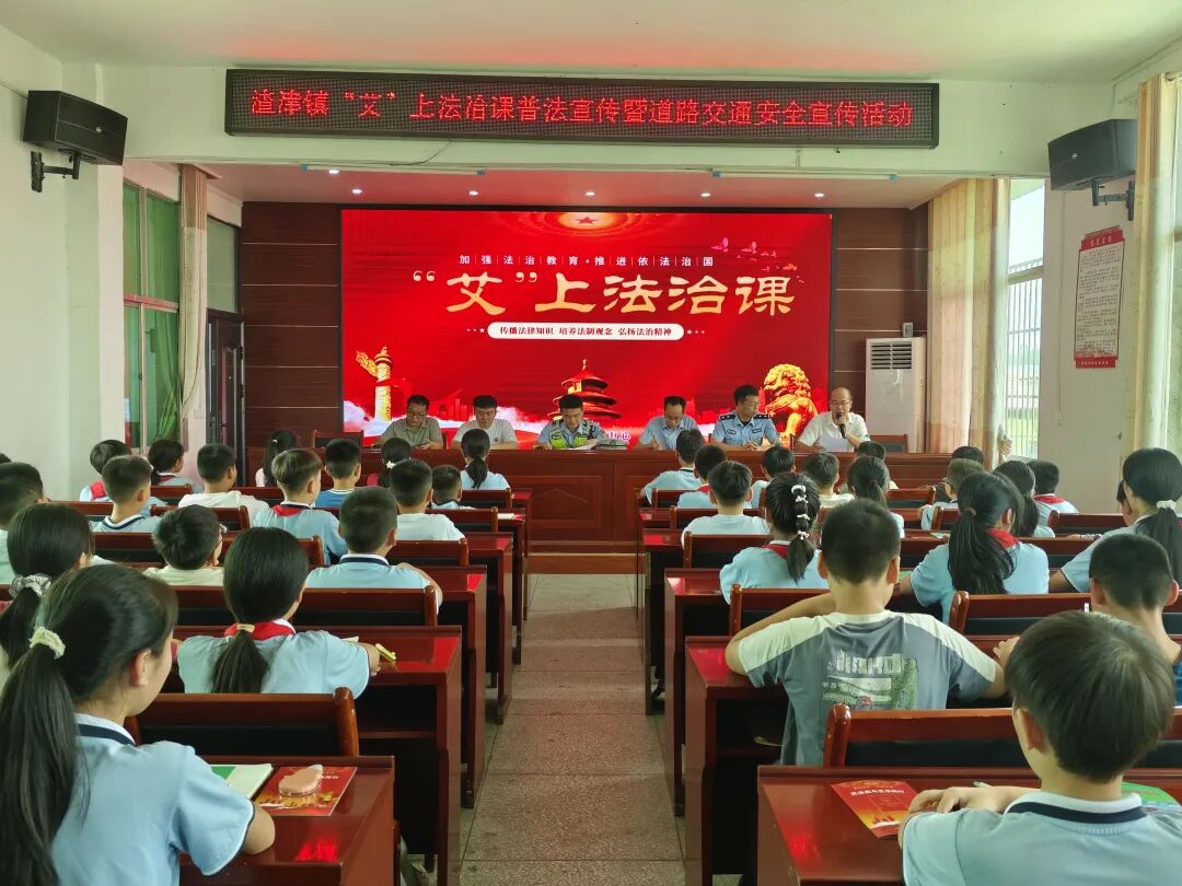 为深入推进青少年法治教育和道路交通安全工作,增强青少年的法律意识,交通安全意识和自我保护能力,营造青少年尊法学法守法用法和自觉遵守交通规则的良好氛围。在学年开学之际,渣津镇综治中心牵头镇派出所、交警中队、司法所、法庭等政法单位,深入该镇中学,小学集中开展“艾”上法治课普法宣传暨道路交通安全宣传活动,为同学们送去精彩纷呈的法治教育“开学礼”。渣津镇古代被称为古艾候国,艾和爱一语双关,表明渣津镇对法治进校园活动的高度重视。