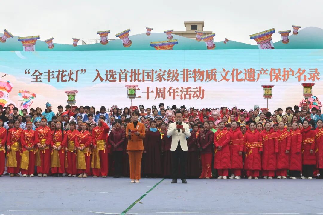 2026年元旦,全丰镇迎来一场文化盛事——“全丰花灯”入选首批国家级非物质文化遗产保护名录二十周年活动,各界嘉宾、非遗传承人、文艺工作者与当地千余名群众欢聚一堂,共同见证这场既承载千年文脉,又绽放时代光彩的非遗盛会。