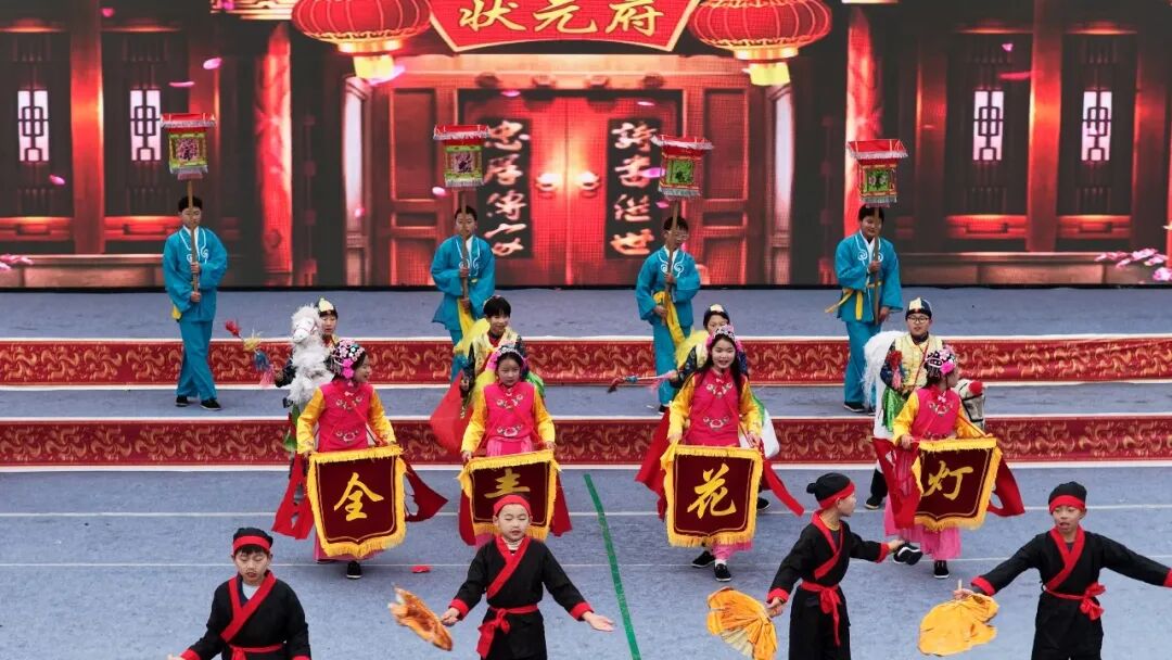 庆典现场,老中青少四代同台演绎,呈现出非遗薪火相传的生动画面。76岁的国家级非物质文化遗产项目全丰花灯代表性传承人戴水平带领老年花灯队,与全丰镇中小学生、青年艺术演员联袂献艺。传统剧目《八仙庆寿》韵味醇厚,青春改编的《接状元》朝气蓬勃,而跨界创编的《全丰花灯唱全丰》等新节目,则让古老花灯从乡间阡陌走向更广阔的舞台。