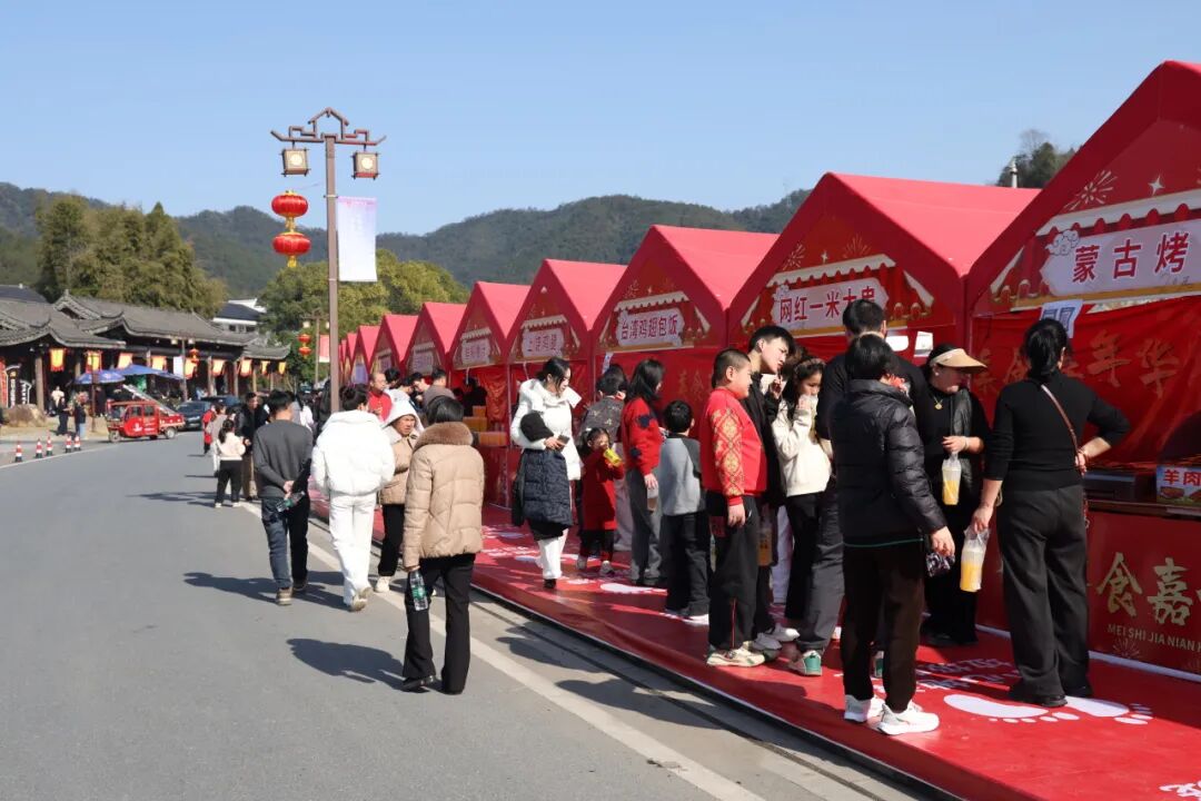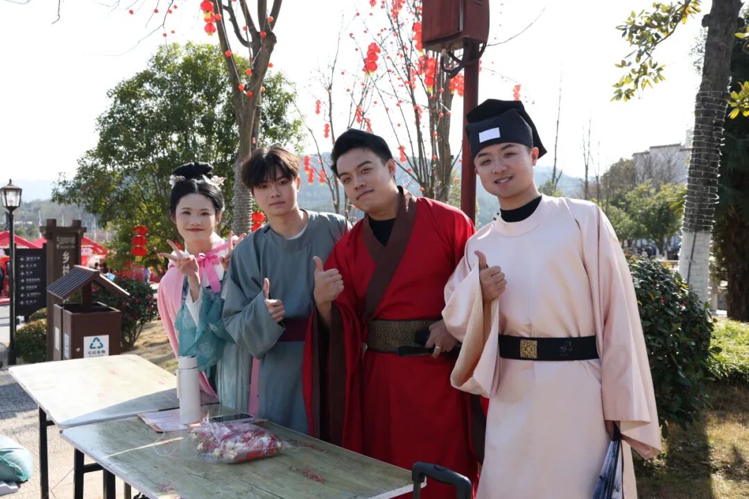 白天,歌舞表演与特色文艺活动精彩不断,欢快的旋律、灵动的舞姿引得游客驻足喝彩。集福互动活动人气爆棚,游客们游进士园、逛小吃街、爬魁星楼,在趣味打卡中收获新春福气,感受诗书文化。