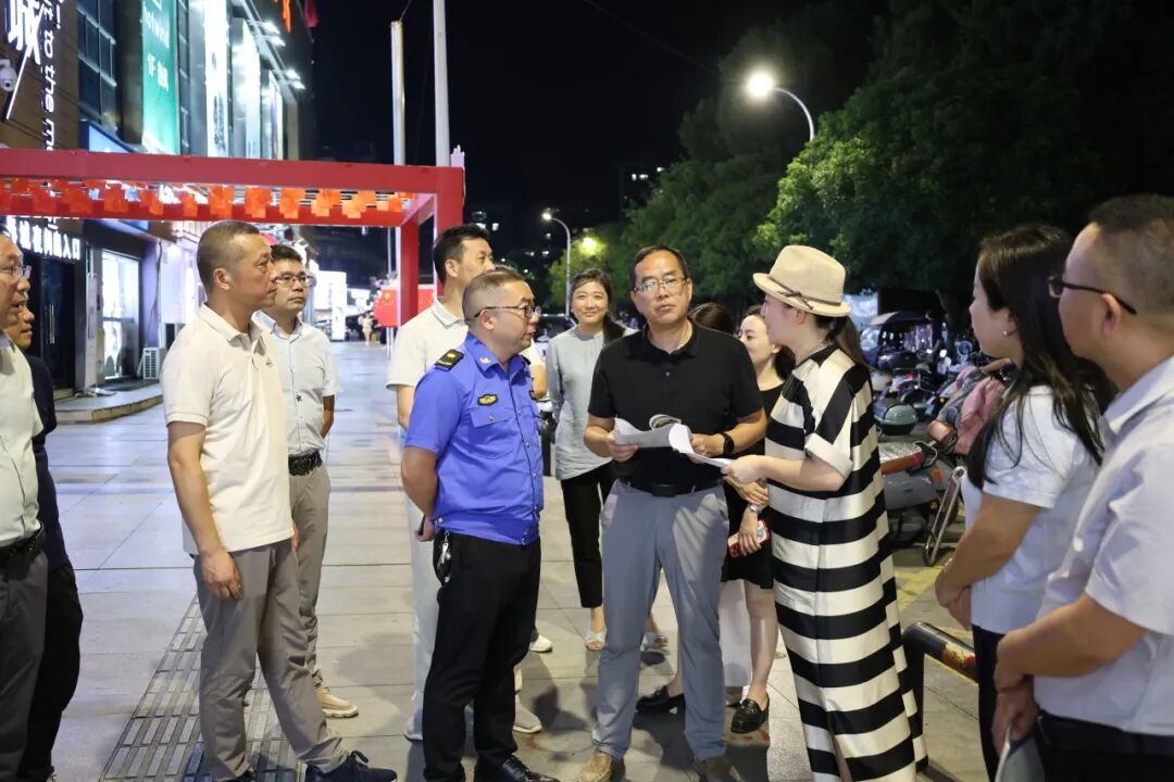 视察组一行先后到联盛夜市点、时代华庭转角处夜宵点、修河天街、鹿鸣谷、金三角夜宵点以及宁州古城,实地查看夜间经济业态布局、经营状况及基础设施配套情况。现场,与各运营管理方深入交流,记录发展亮点与问题。