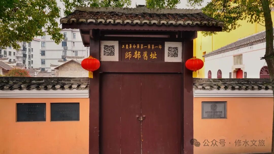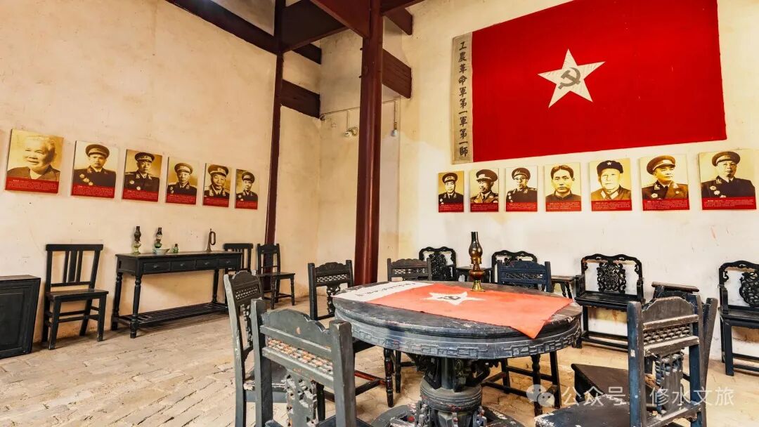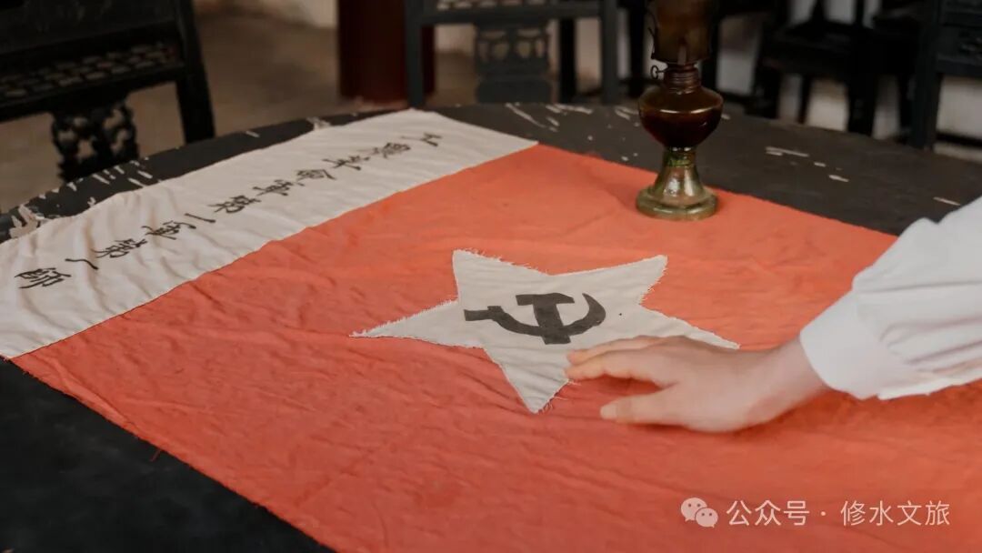 一九二七年九月初的一个深夜,三名年轻的军人接到任务,在这里设计制作军旗,这三人分别是师部参谋处长陈树华、参谋何长工、副官杨立三。