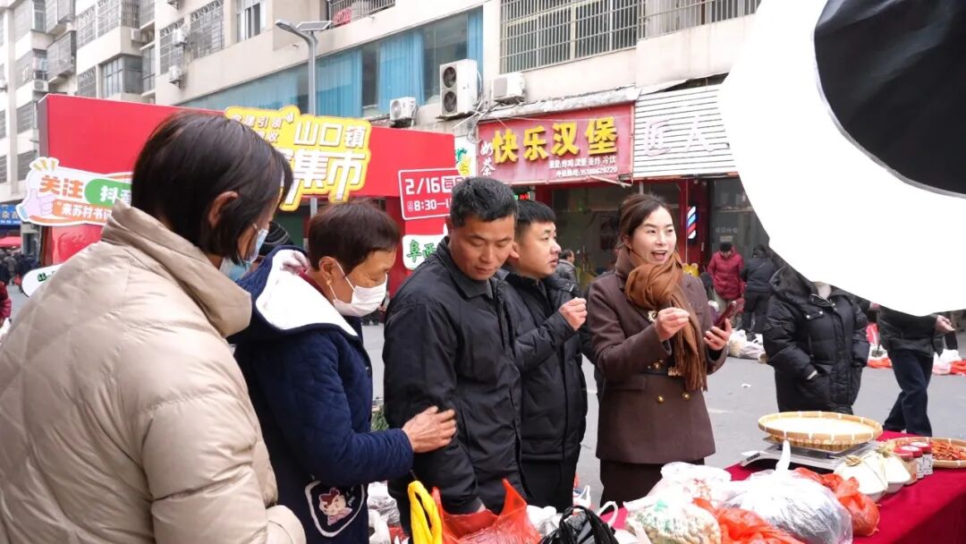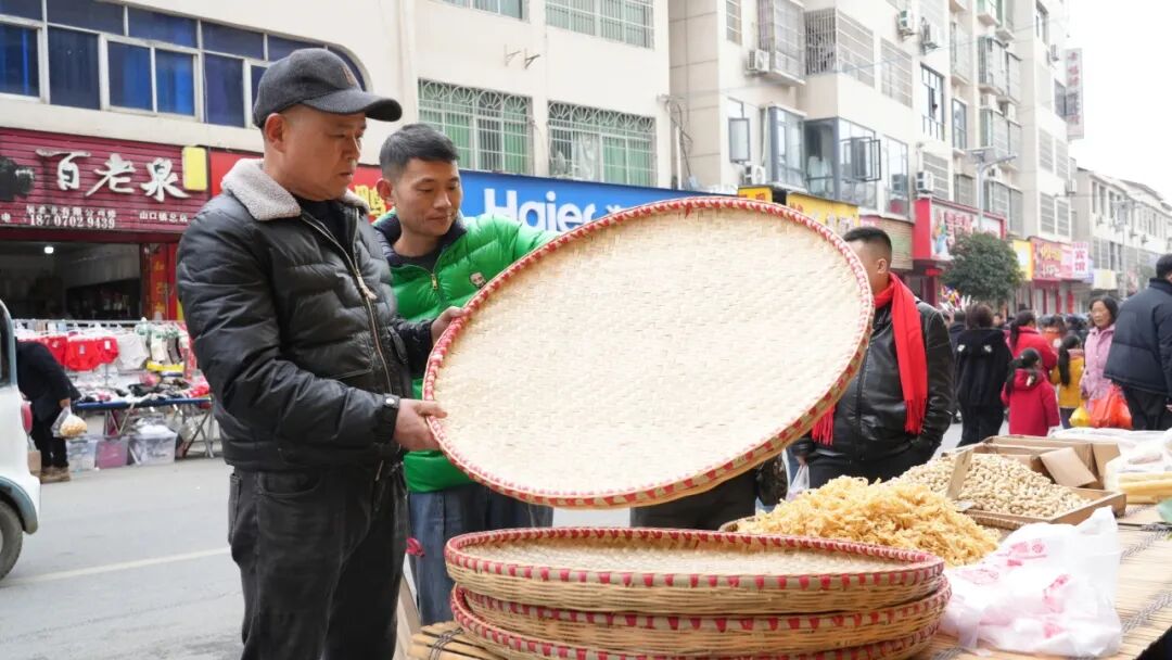 “赶集非常热闹,周边乡镇的人都来了,有过年的感觉了。集市上的年货很多,可以一站式购齐。”市民吴以芳说。市民陈欣欣说:“这里非常热闹,我还在写春联活动现场请老师写了一副春联,祝大家新年快乐、马到成功!” 做了十多年炒货生意的谢俊清是集市上的“老熟人”,他家的炒货也是村民们年货清单里的“必选项”。“生意挺好,赶上大集,大家都要备点干货,一早上已经卖了三四千元。”为应对春节客流,他还动员全家上阵帮忙。“我早上七点多就过来帮忙了,板栗、瓜子、花生,还有修水的特产泡茶的芝麻、豆子,都卖得比较好。”谢俊清妹妹谢俊菊告诉记者。 除热闹的线下集市之外,山口镇的“云上赶集”同样火热。集市旁的直播间里,主播正带着网友“云逛”年圩,推介笋干、豆角干、苦槠豆腐等农特产品。直播不到一小时,已成交上百单,销售额突破5000元。