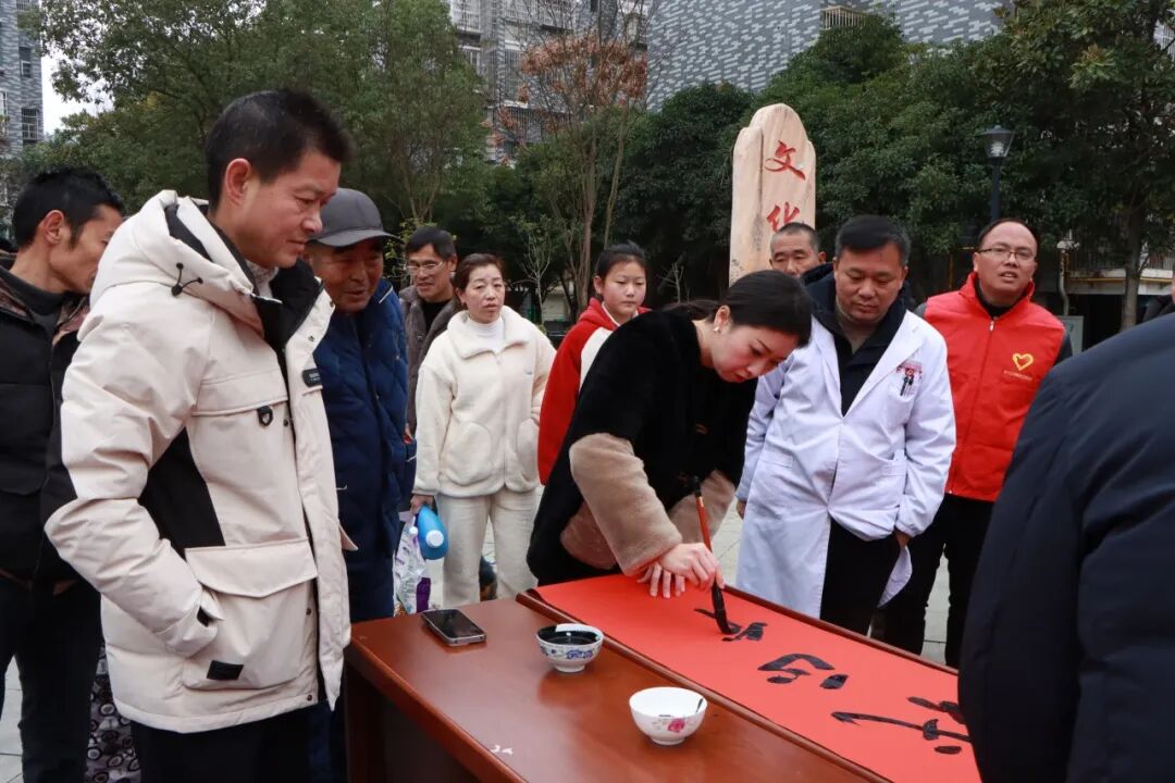 粥暖寒冬,福迎新春。1月28日上午,由竹坪乡紫竹社区居委会主办,县妇幼保健院、县融媒体中心、县九小等多家单位协办的“浓情腊八暖社区,健康纳福迎新春”主题活动,在紫竹佳园小区举行,为辖区居民送上了一份蕴含传统习俗与健康关怀的节日厚礼。 现场暖意融融,免费义诊、腊八粥发放、写春联送祝福等活动同步开展。医疗团队细致接诊、志愿者热情引导、居民有序参与,墨香、粥香与欢声笑语交织在一起。