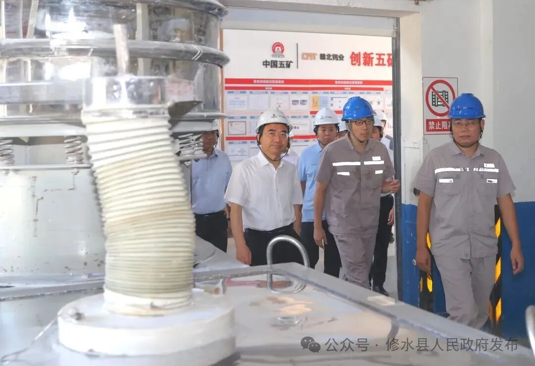赣北钨业有限公司年安全投入近700万元,构建了完善的安全环保管理体系和风险分级管控机制,获评二级安全标准化企业。蒋文定实地察看企业生产线运行状况,详细了解企业安全生产与发展情况,要求持续筑牢安全防线,以技术创新驱动产业升级。